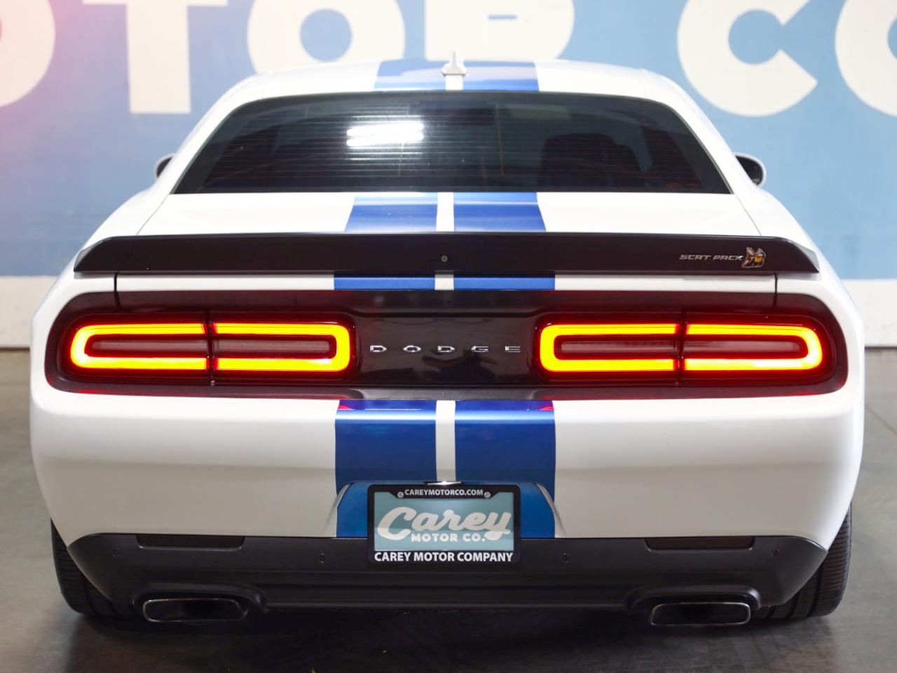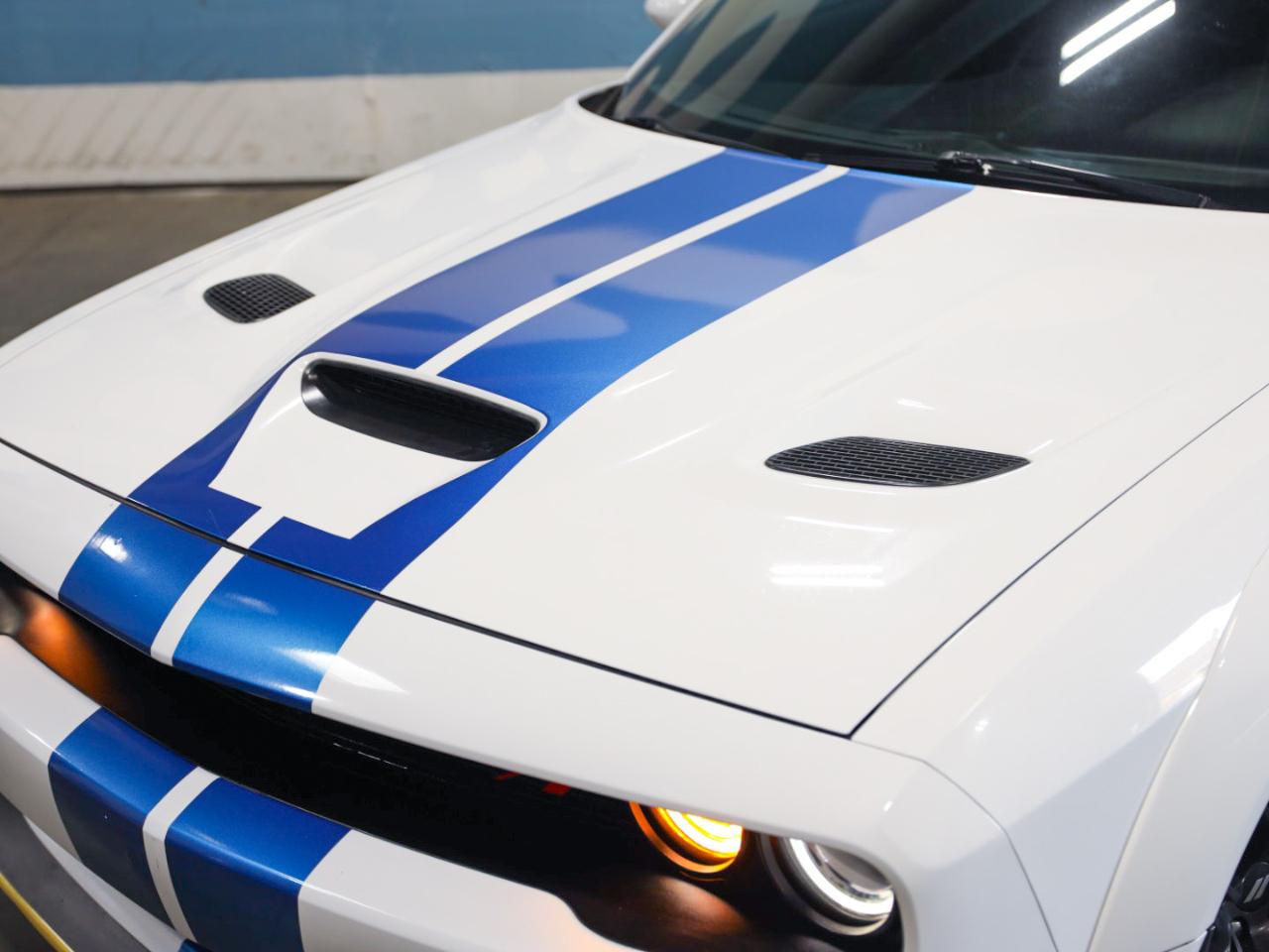 Check out this 2020 Dodge Challenger R/T Scat Pack Widebody — a real head-turning muscle car that’s been a Southwest car its whole life with only 3 previous owners and NO ACCIDENTS. Finished in striking White Knuckle Clearcoat with Blue Racing Stripes, this powerful Challenger delivers classic American performance paired with modern technology and premium comfort.