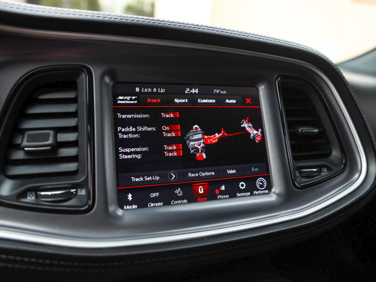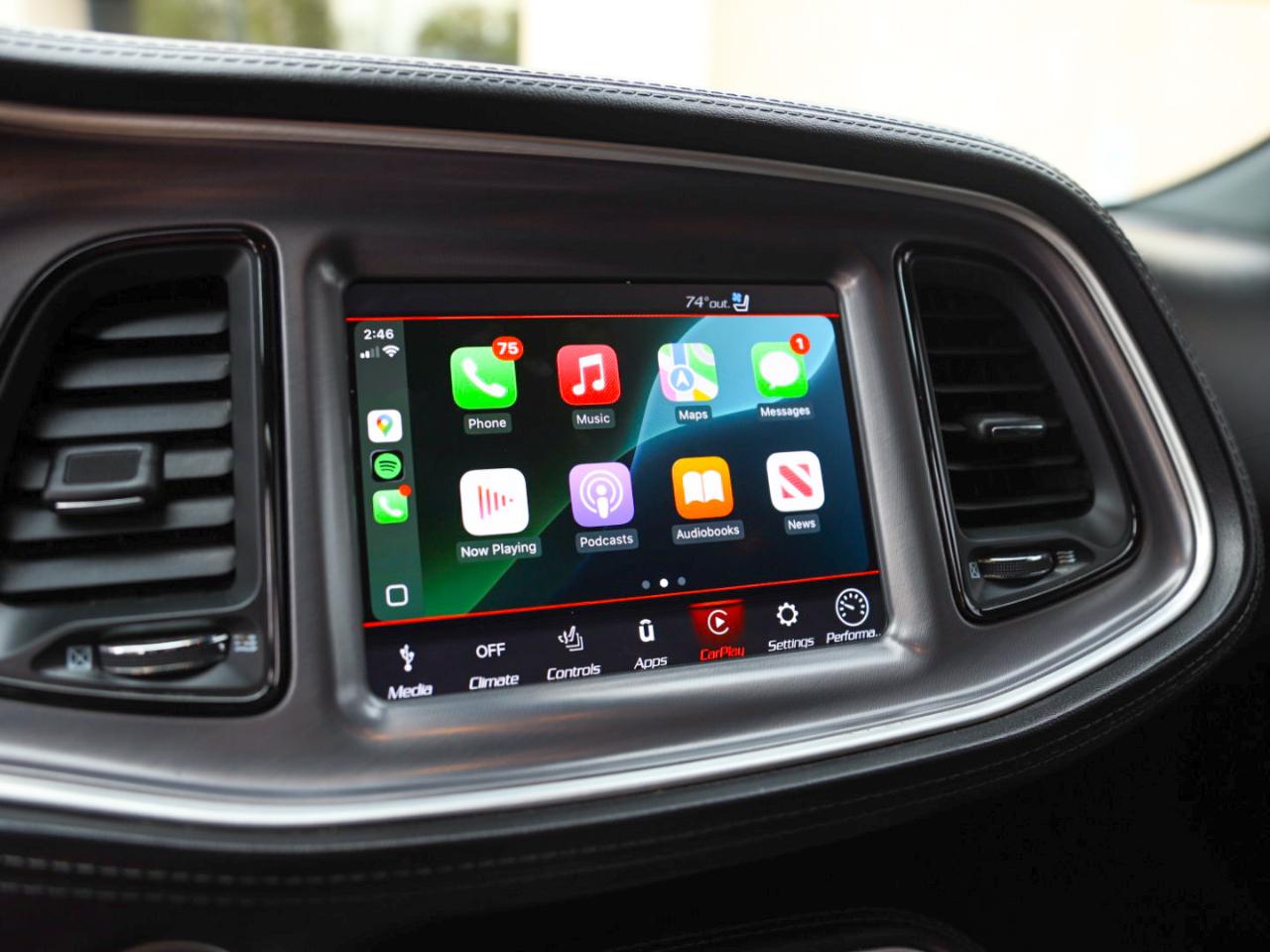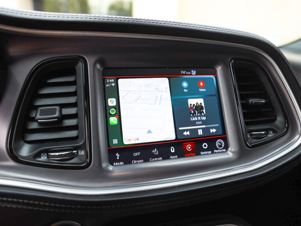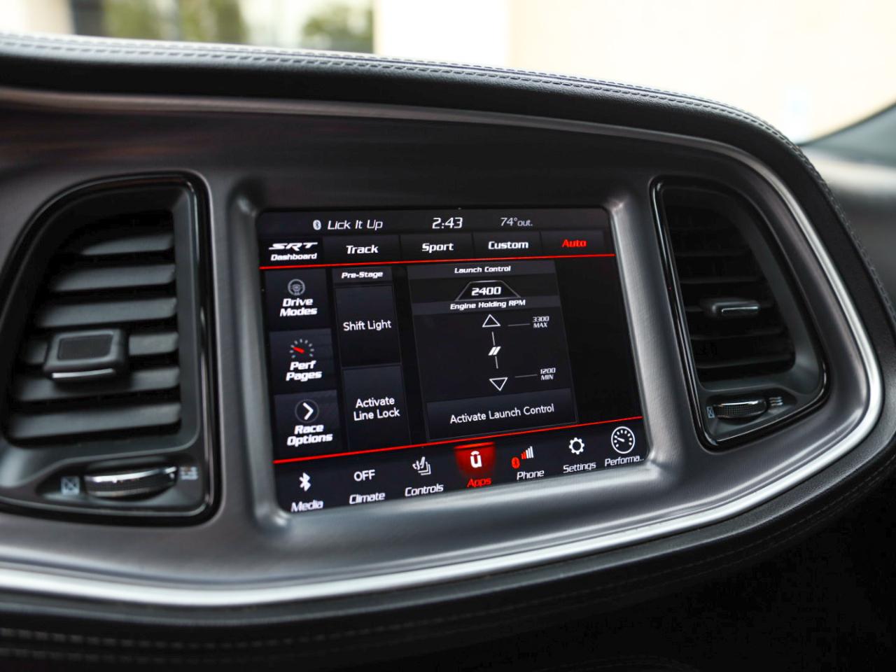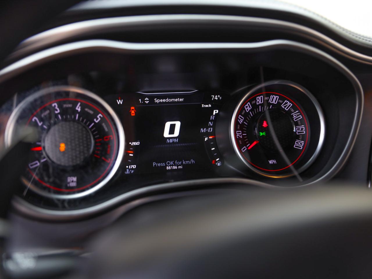 Interior: Premium black leather/Alcantara Scat Pack seating and leather dash for a luxe, sporty cabin feel